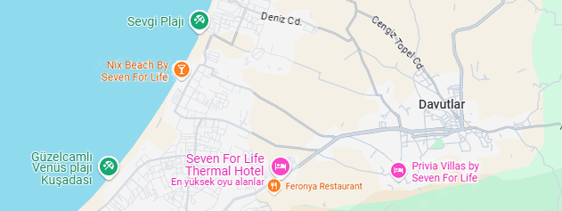 Kuşadası’nın eşsiz doğasında, Davutlar ve Güzelçamlı’nın tertemiz havasıyla buluşan Seven For Life Thermal Hotel, Aydın’ın en seçkin, Kuşadası’nın ise tek 5 yıldızlı termal oteli olarak misafirlerine yıl boyunca konforlu bir tatil sunuyor. Dilek Yarımadası Milli Parkı’na yakın konumuyla doğa severler için de benzersiz bir alternatif oluşturuyor.